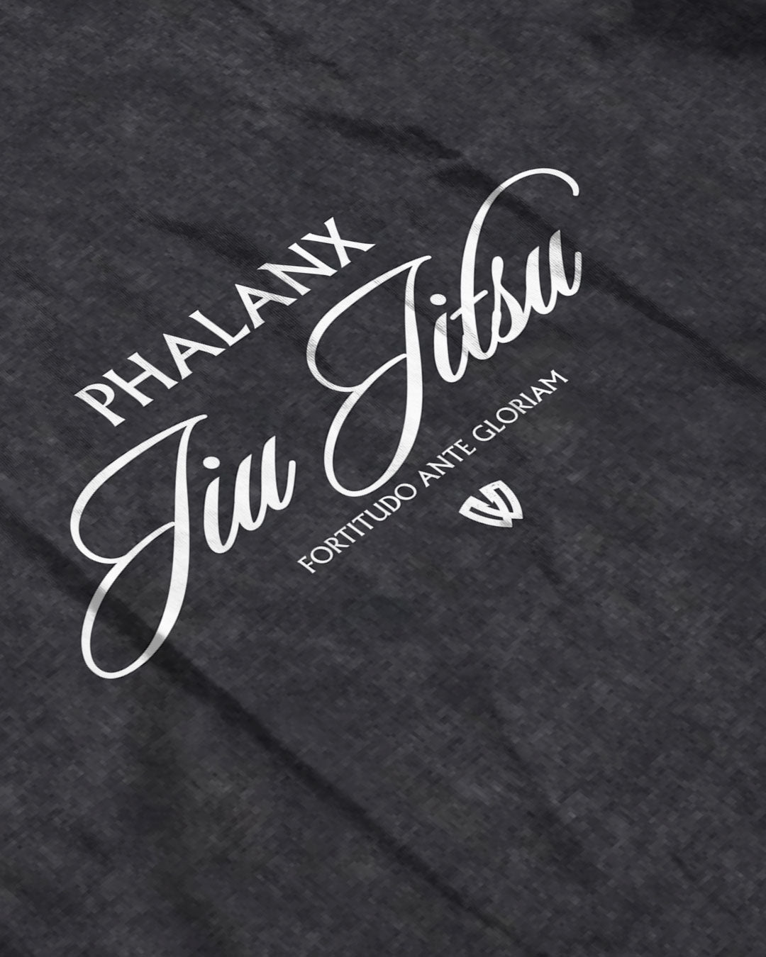 The Phalanx Jiu Jitsu Tee carries the creed Fortitudo Ante Gloriam, meaning strength before glory. With a vintage wash and clean script design, it stands as everyday armor for those who live jiu jitsu culture on the mats and in the streets.