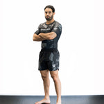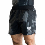 The Glitch Noir fight shorts deliver a sharp black and gray design with a performance fit made for men who train and compete. Lightweight, fast drying, and built with 4 way stretch and a secure waistband, they move as you move, giving you durable armor for the mats.