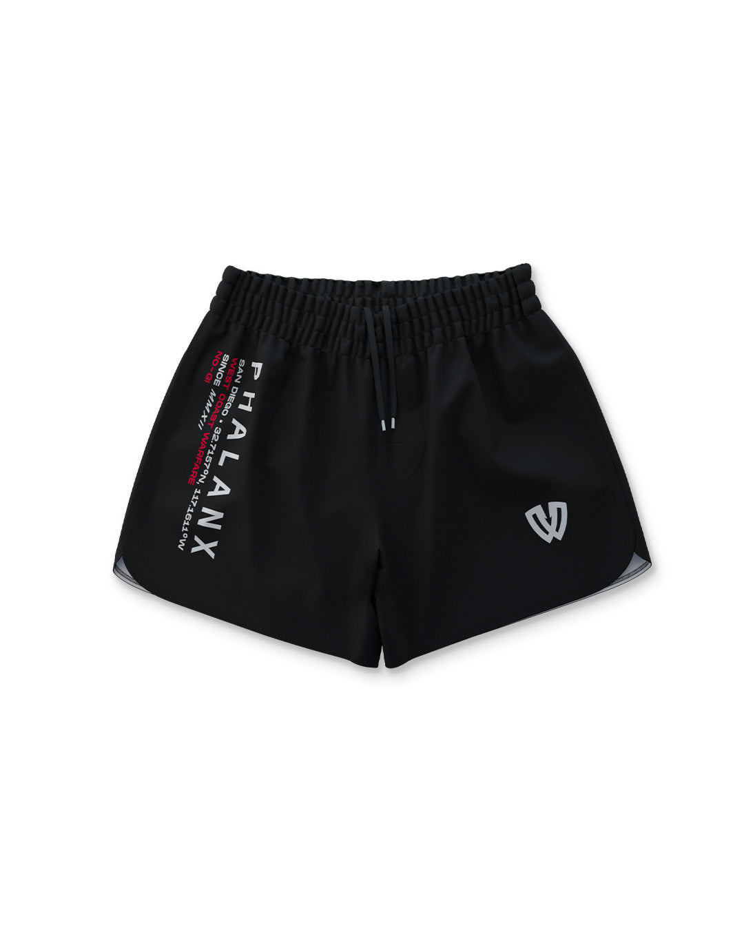 The West Coast Warfare shorts in black carry clean Phalanx branding tied to our roots, built for those who train and compete. Lightweight and fast drying with 4 way stretch and a secure waistband, they deliver durable armor that holds strong through every roll.