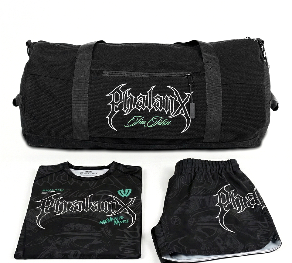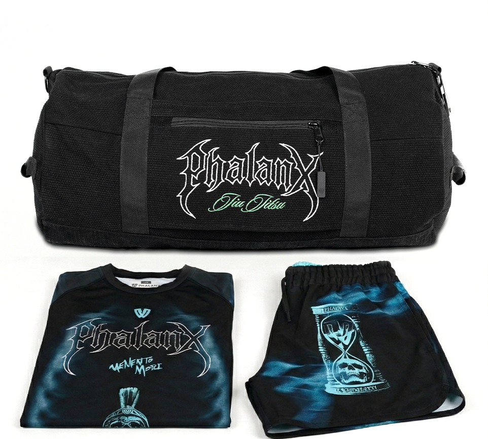 Phalanx Memento Mori collection draws the line between life and Jiu Jitsu. Both demand presence. On the mats a lapse brings the tap. In life forgetting your mortality wastes the moment. This collection honors the fight the focus and the fleeting nature of time.