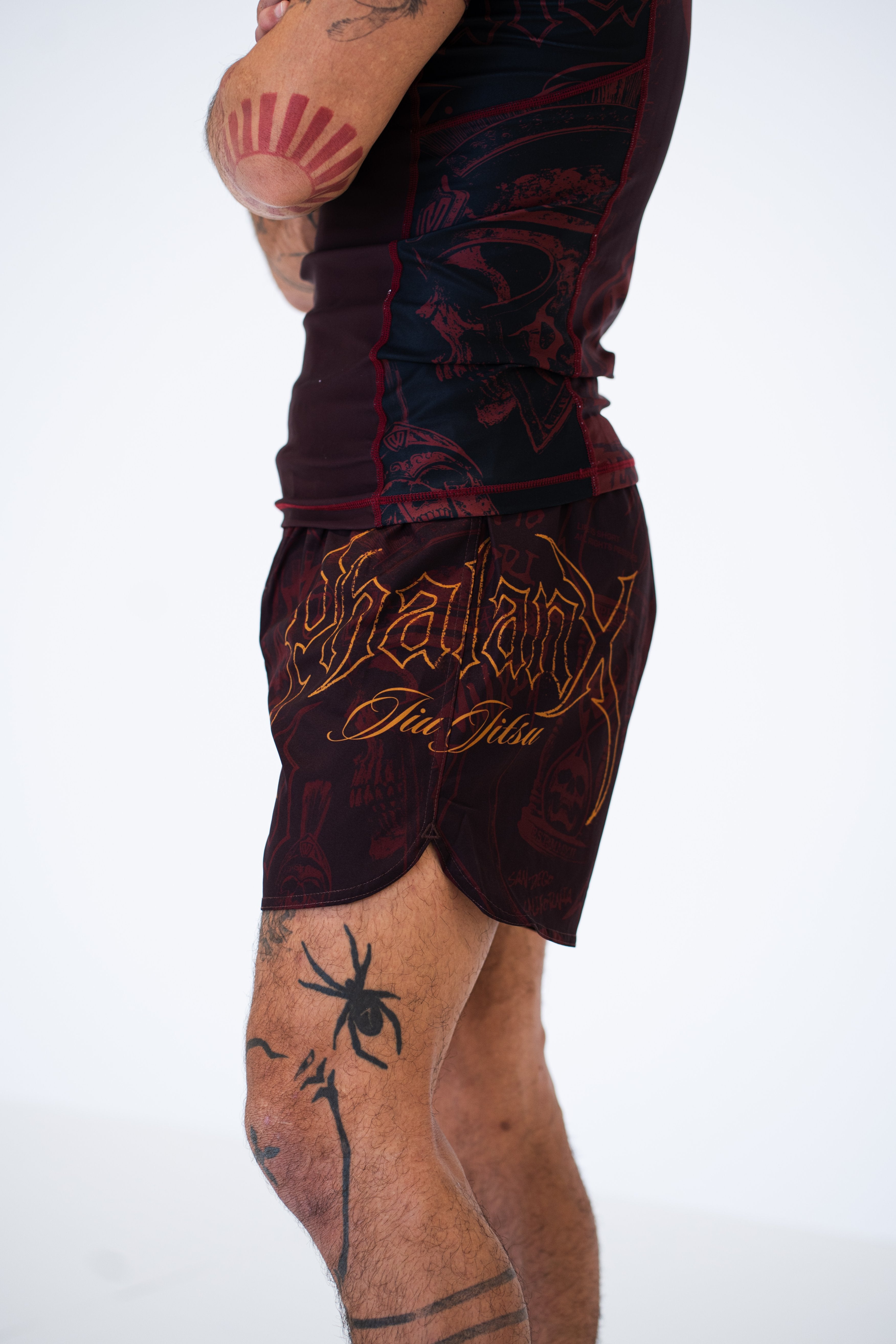 The Memento Mori Covenant fight shorts feature a deep battle-ready design with sharp detailing, built for those who train and compete. Lightweight and fast drying with 4 way stretch and a secure waistband, they deliver resilient armor that stays strong through every roll.