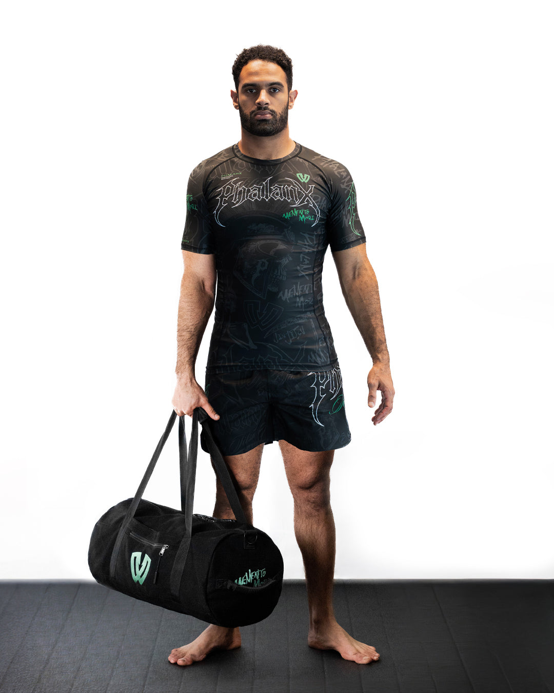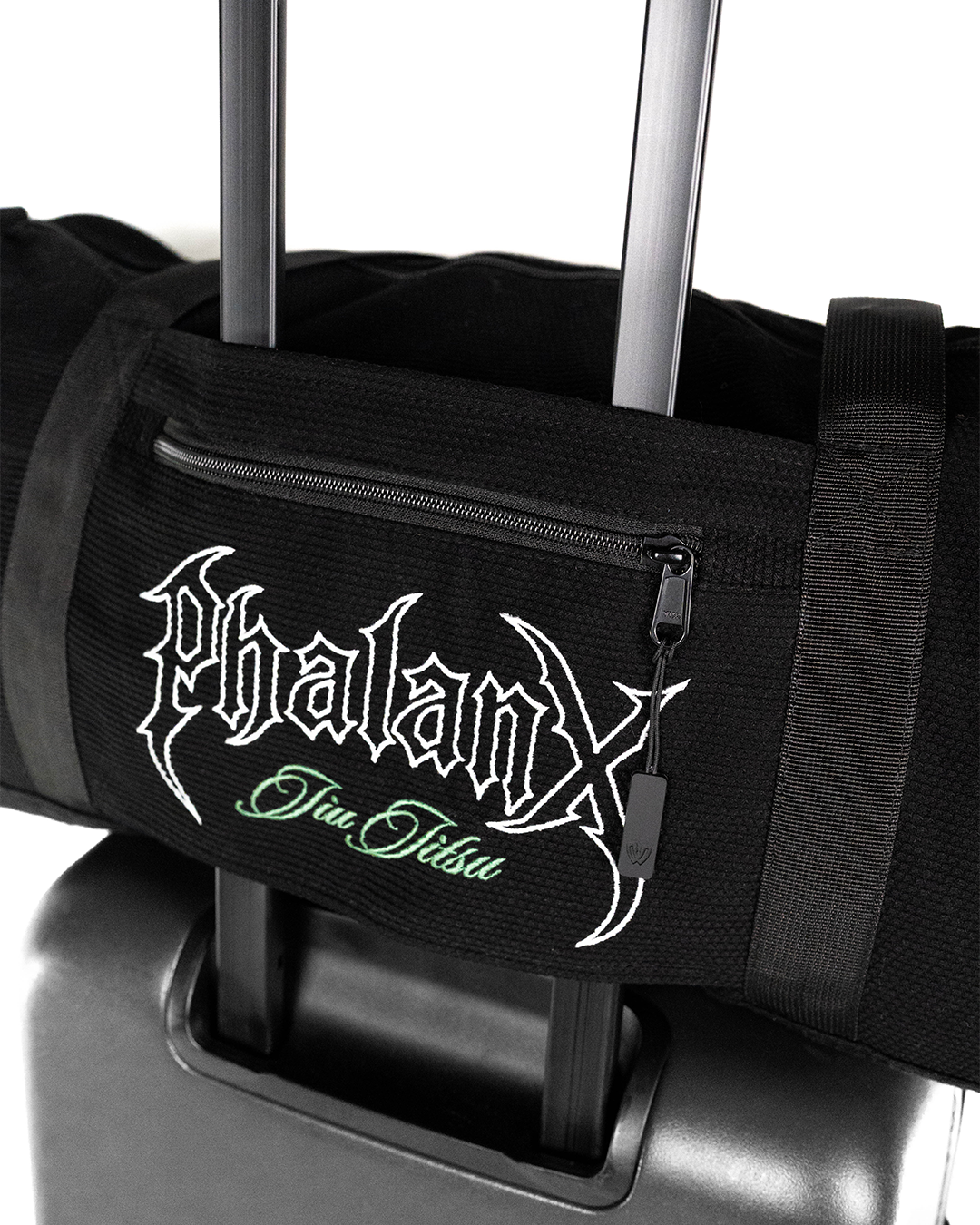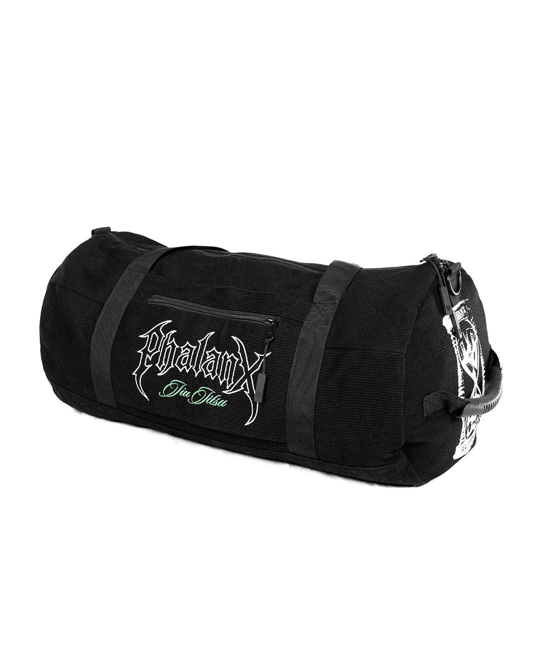 The Memento Mori duffle bag features bold artwork that honors discipline and presence, built for those who train with purpose. Constructed from high quality pearl weave gi material with reinforced carry points and smart storage - no to mention a sturdy rip stop base - it’s made to handle daily gear runs and travel alike.