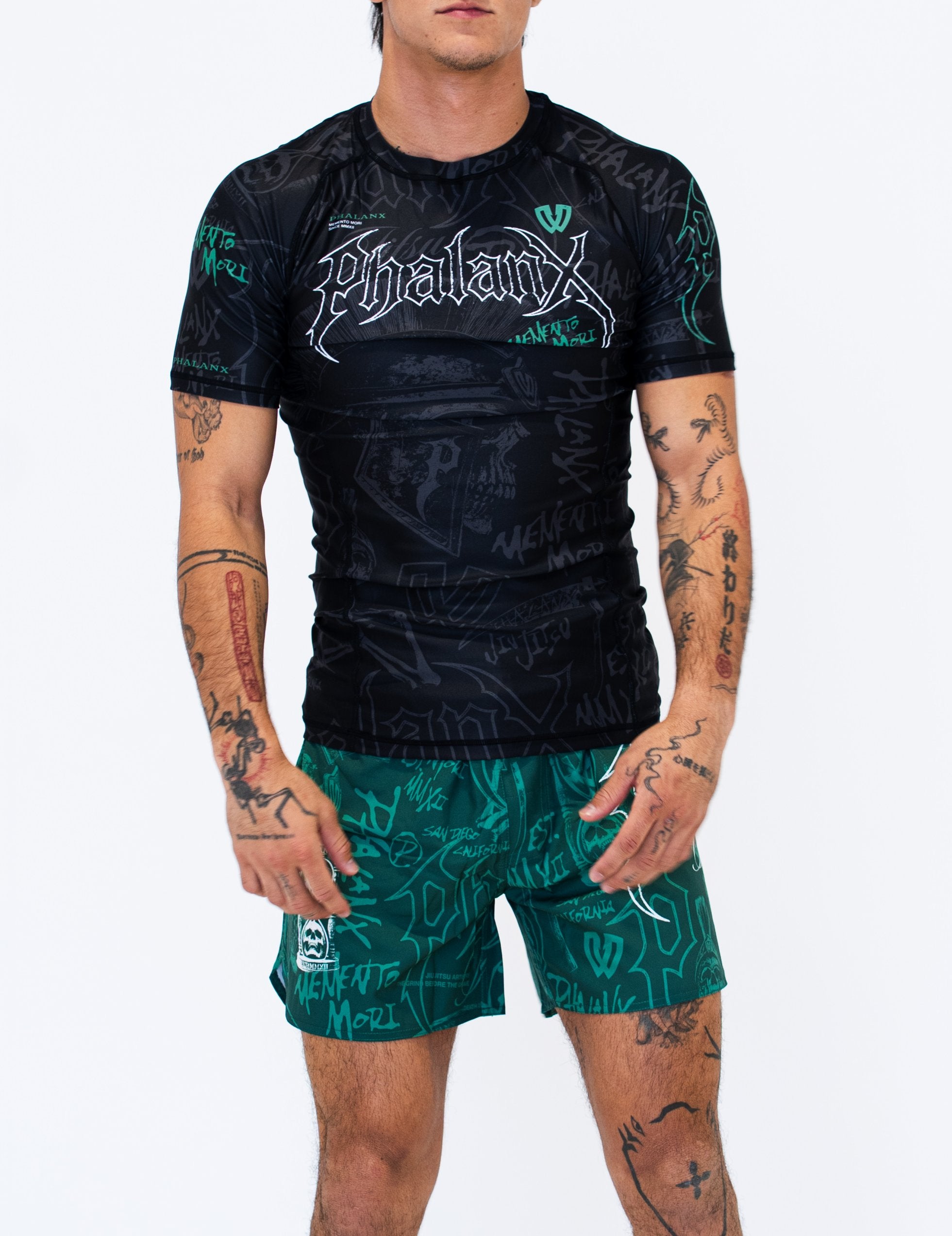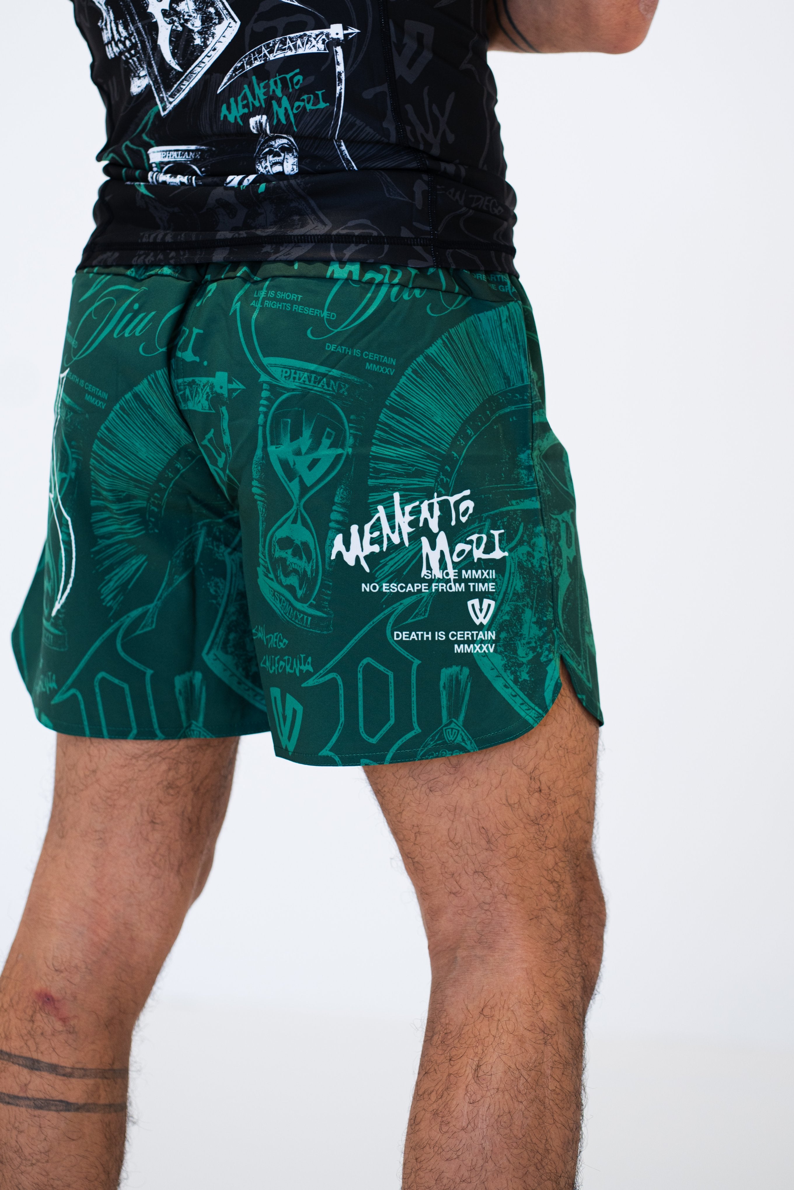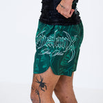 The Memento Mori Wraith fight shorts showcase bold artwork in a striking green design, built for those who train and compete. Lightweight and fast drying with 4 way stretch and a secure waistband, they deliver durable armor that endures every roll on the mats.