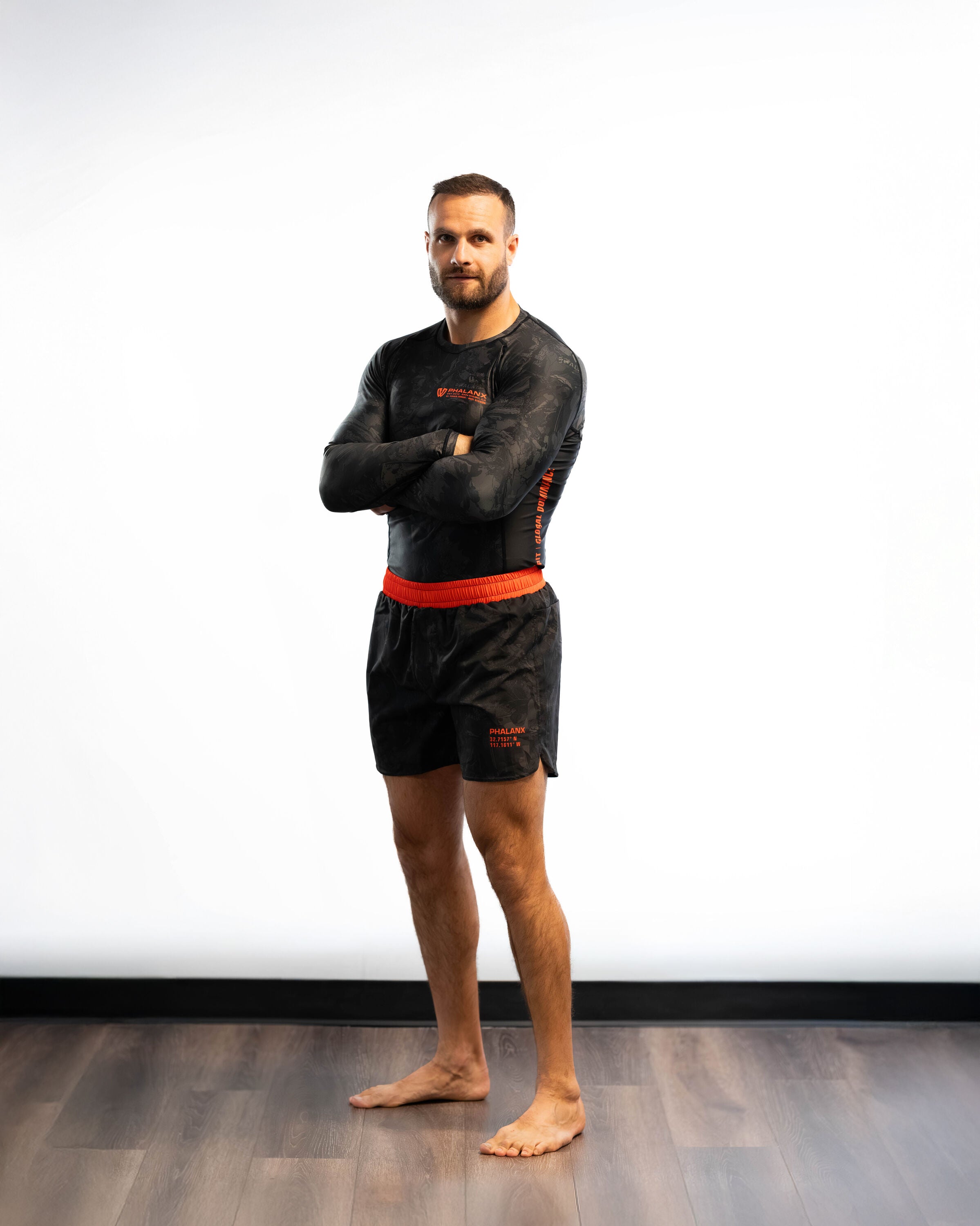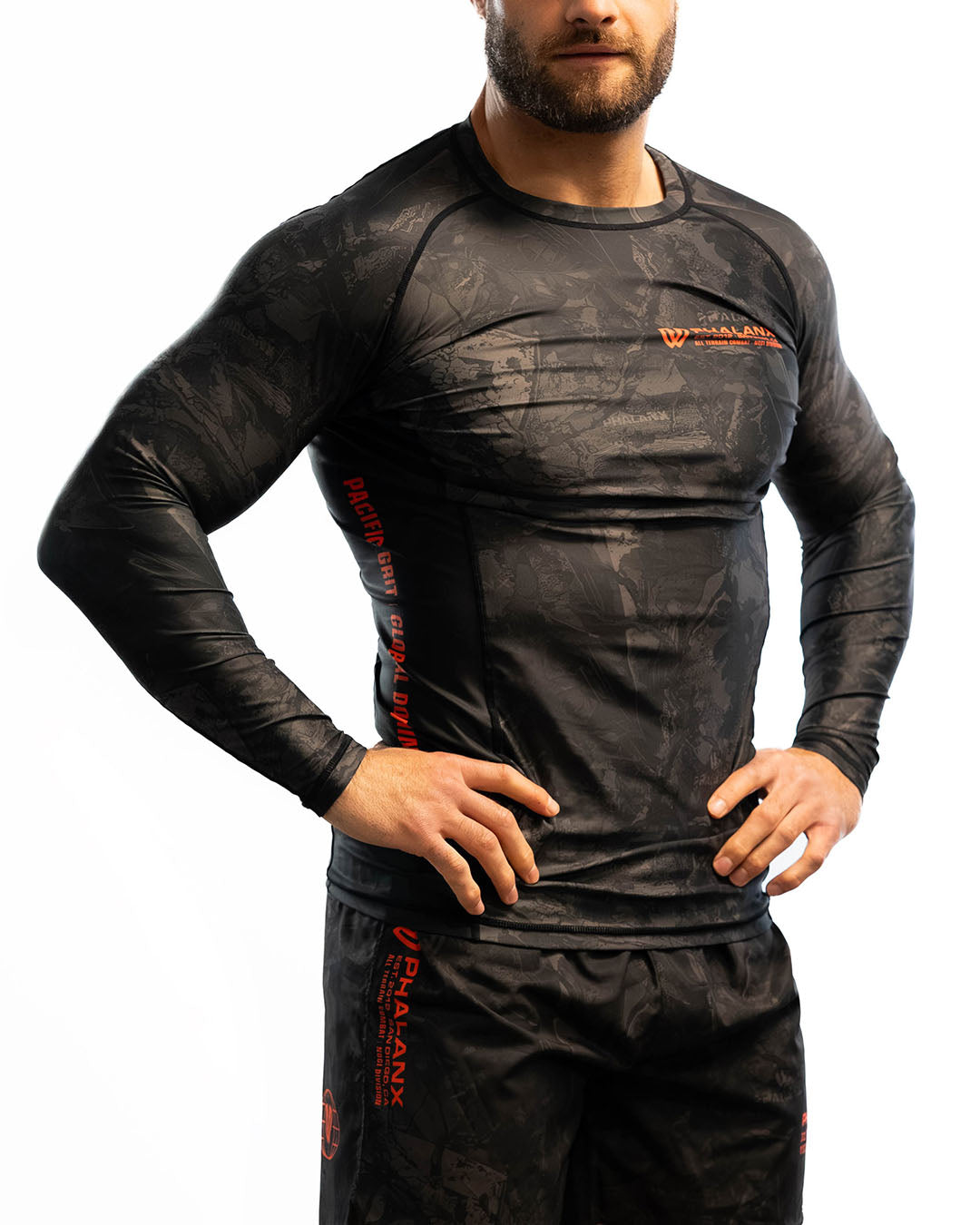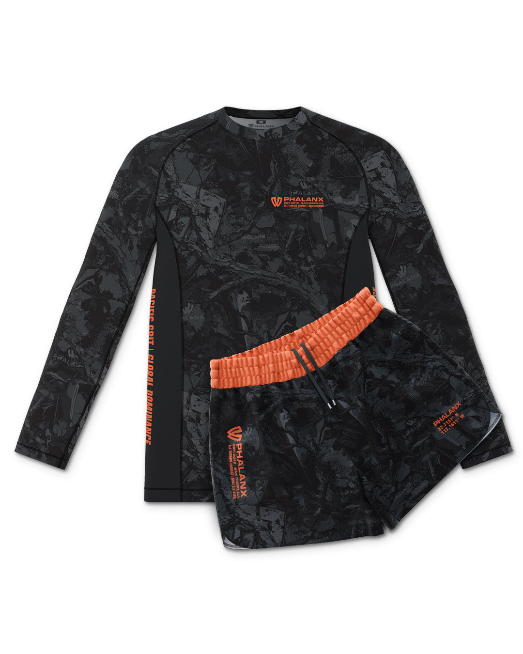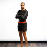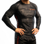 Shadowcore features a dark, camo-inspired design with bold orange accents, built for men who train and compete. With durable stretch, moisture-wicking comfort, and fade-proof graphics, it delivers secure, battle-ready armor for the mats.