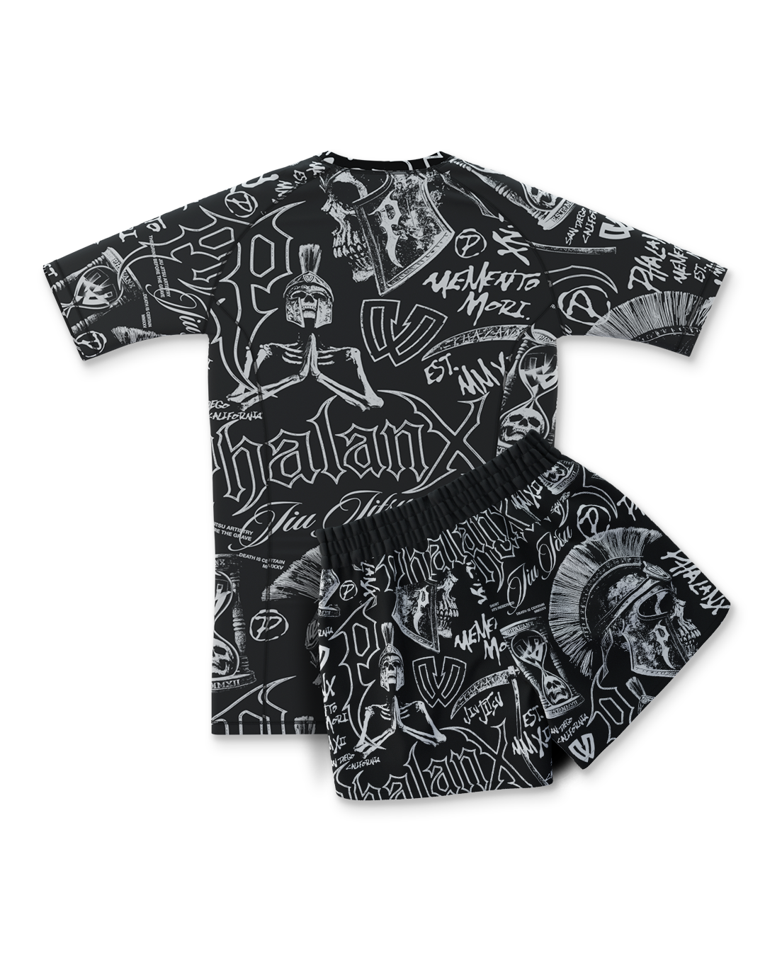 Phalanx Memento Mori collection draws the line between life and Jiu Jitsu. Both demand presence. On the mats a lapse brings the tap. In life forgetting your mortality wastes the moment. This collection honors the fight the focus and the fleeting nature of time.