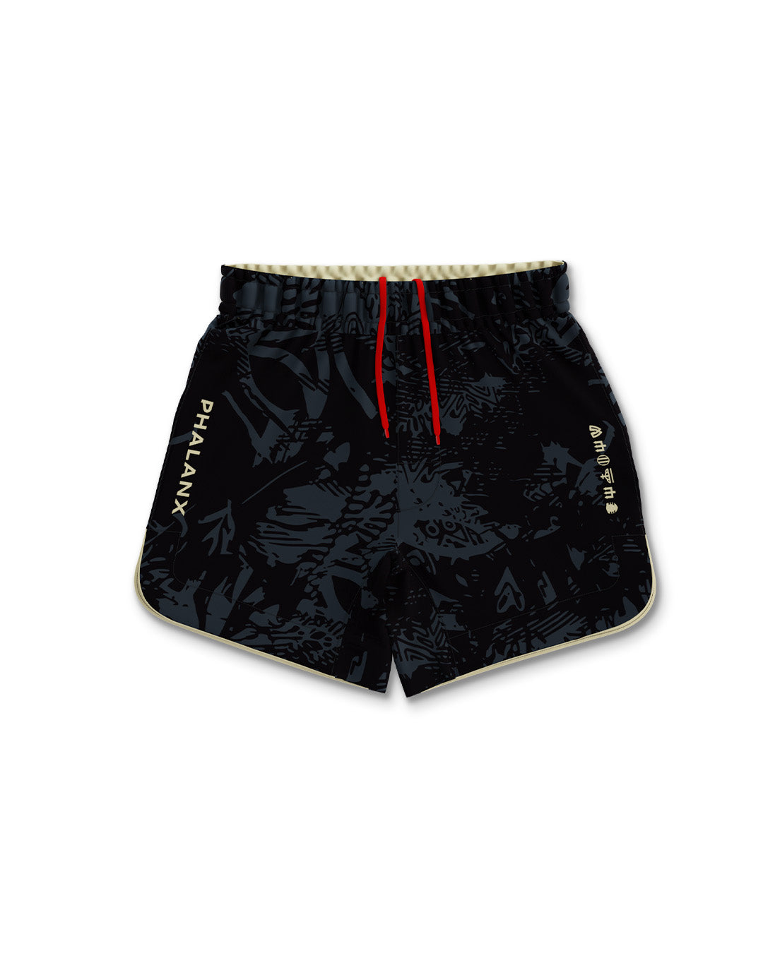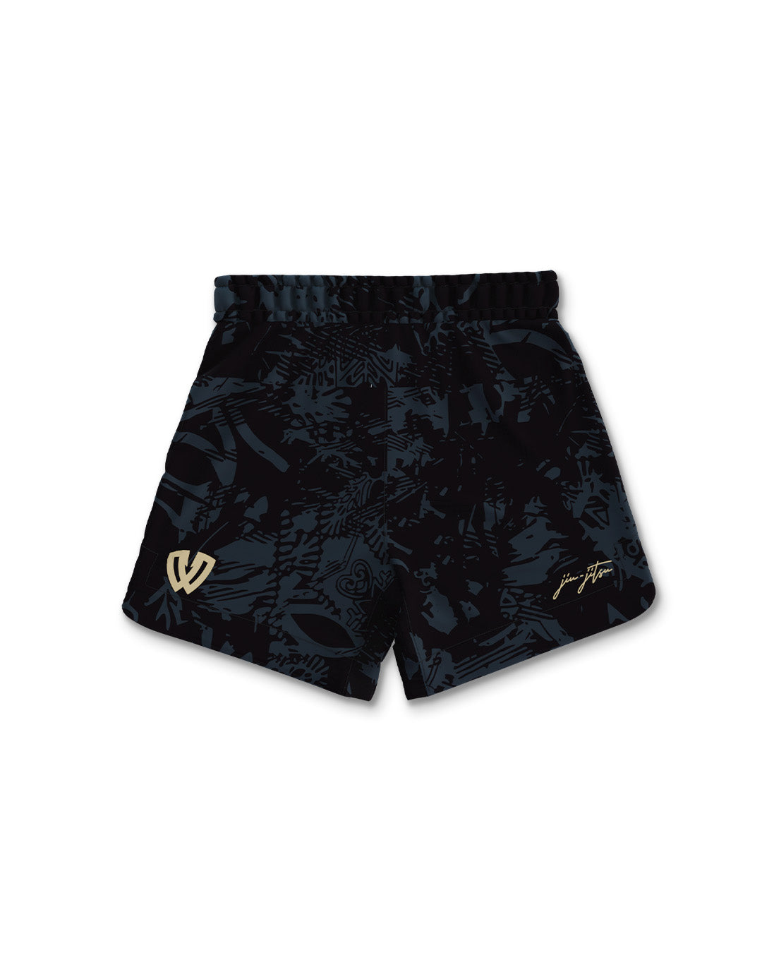 The Vanta fight shorts carry a dark, intricate pattern with clean detailing, built for those who train and compete. Lightweight and fast drying with 4 way stretch and a secure waistband, they deliver durable armor that moves with you through every roll.