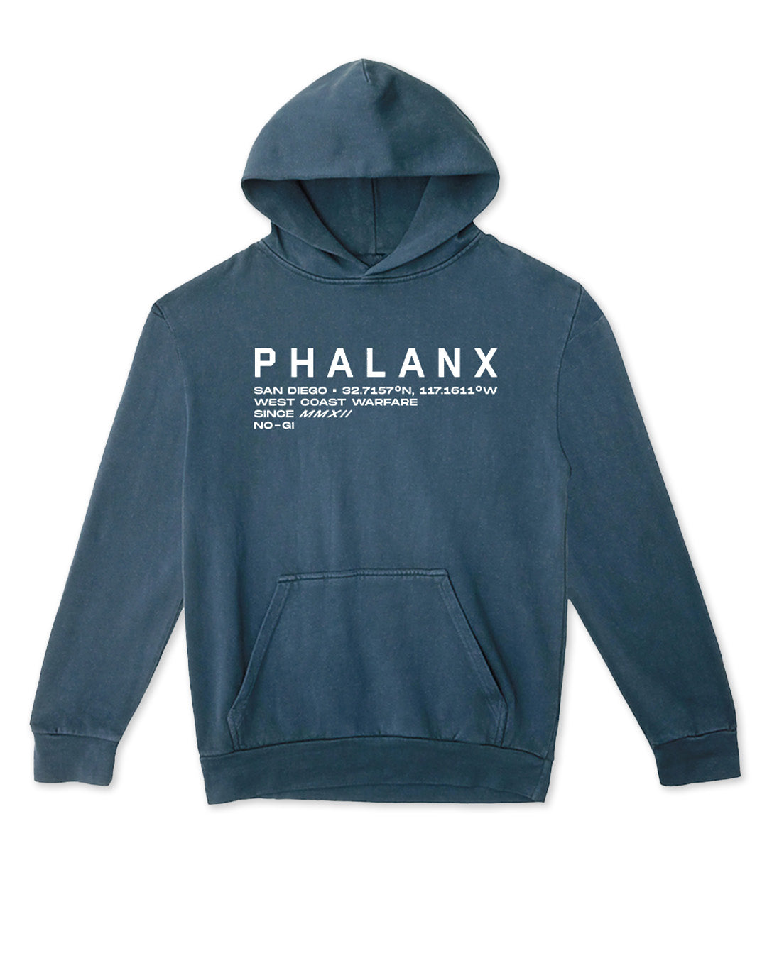 The oversized fit, drop-shoulder cut, and roomy hood bring a modern edge, while the bold West Coast Warfare print makes it unmistakably Phalanx. Finished with a front kangaroo pocket for utility and ribbed cuffs and hem for a secure fit, this is the hoodie you’ll reach for before and after every session.