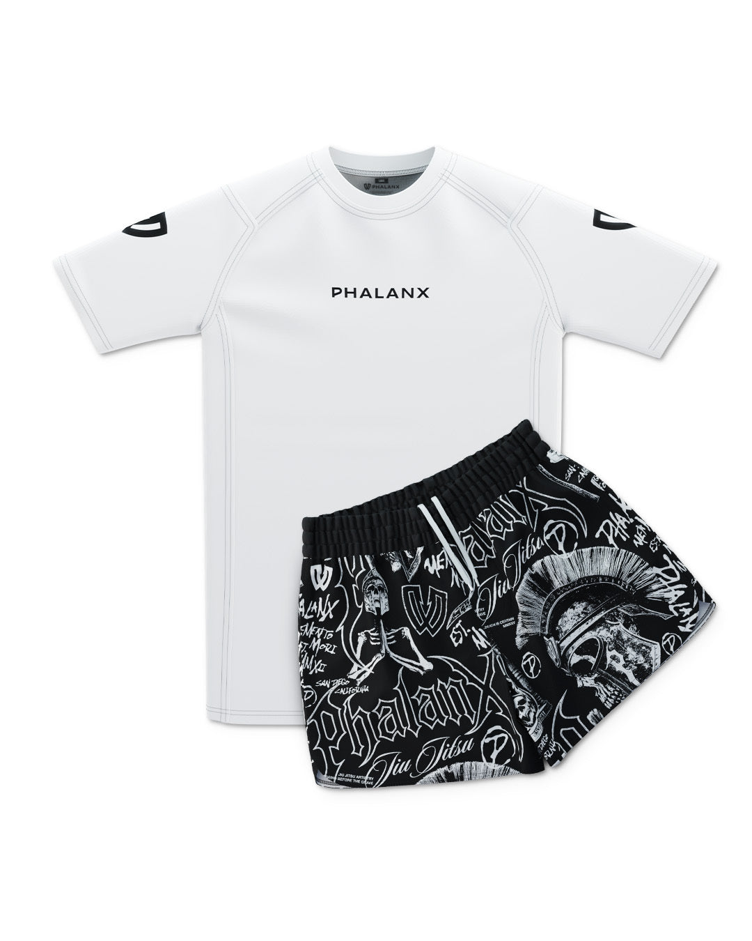 The Memento Mori Marrow fight shorts feature bold warrior imagery with graffiti-inspired detail, built for those who train and compete. Lightweight and fast drying with 4 way stretch and a secure waistband, they deliver durable armor that moves with you through every roll.