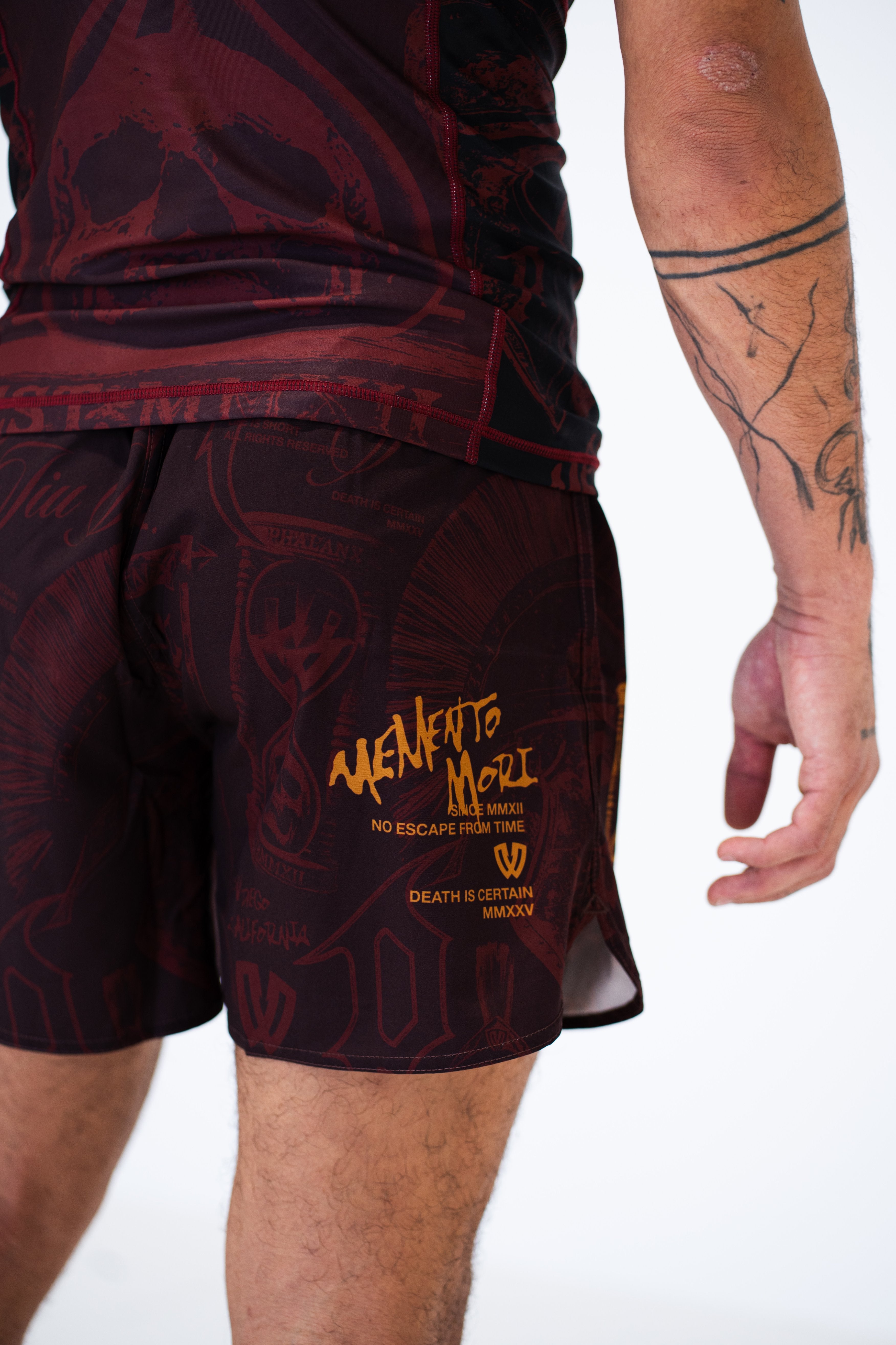 The Memento Mori Covenant fight shorts feature a deep battle-ready design with sharp detailing, built for those who train and compete. Lightweight and fast drying with 4 way stretch and a secure waistband, they deliver resilient armor that stays strong through every roll.