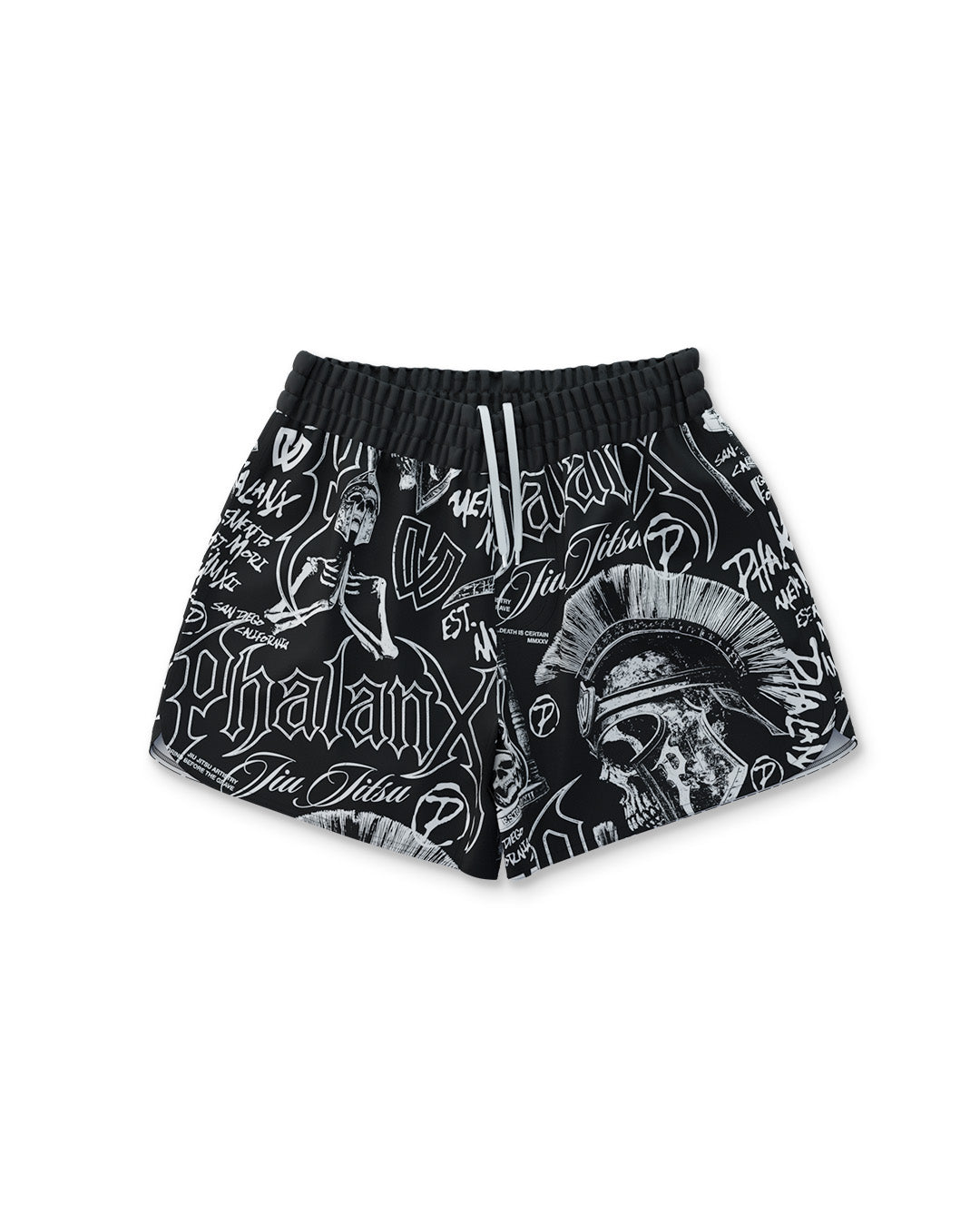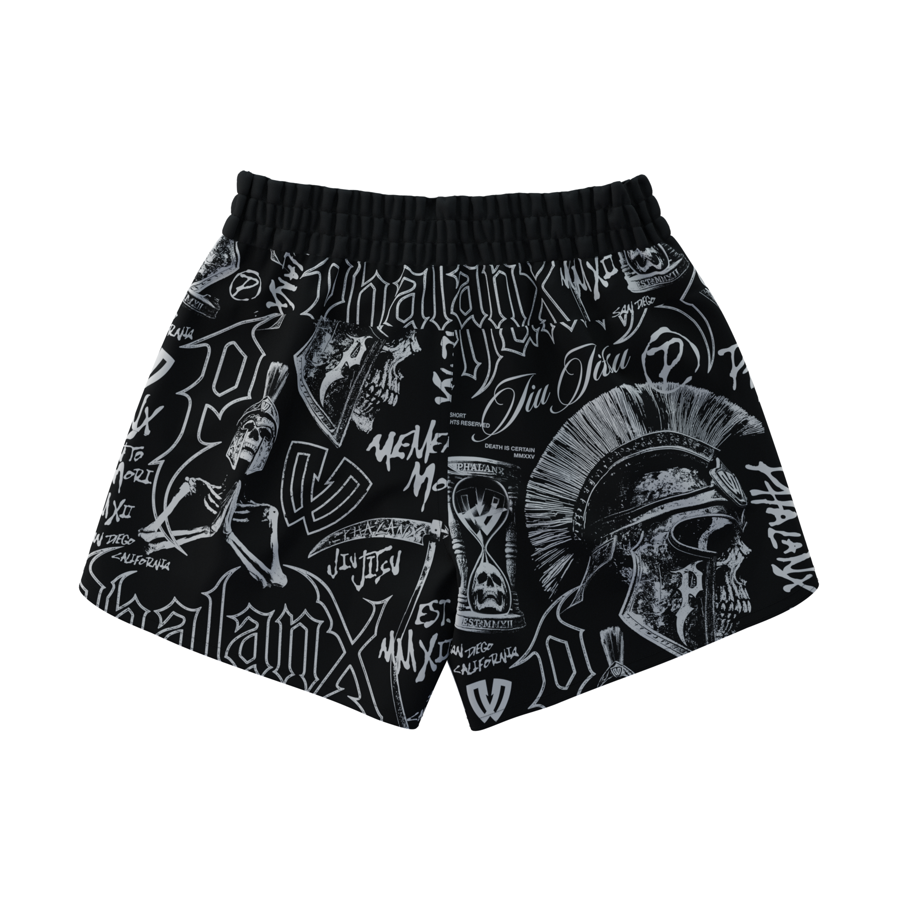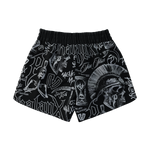The Memento Mori Marrow fight shorts feature bold warrior imagery with graffiti-inspired detail, built for those who train and compete. Lightweight and fast drying with 4 way stretch and a secure waistband, they deliver durable armor that moves with you through every roll.