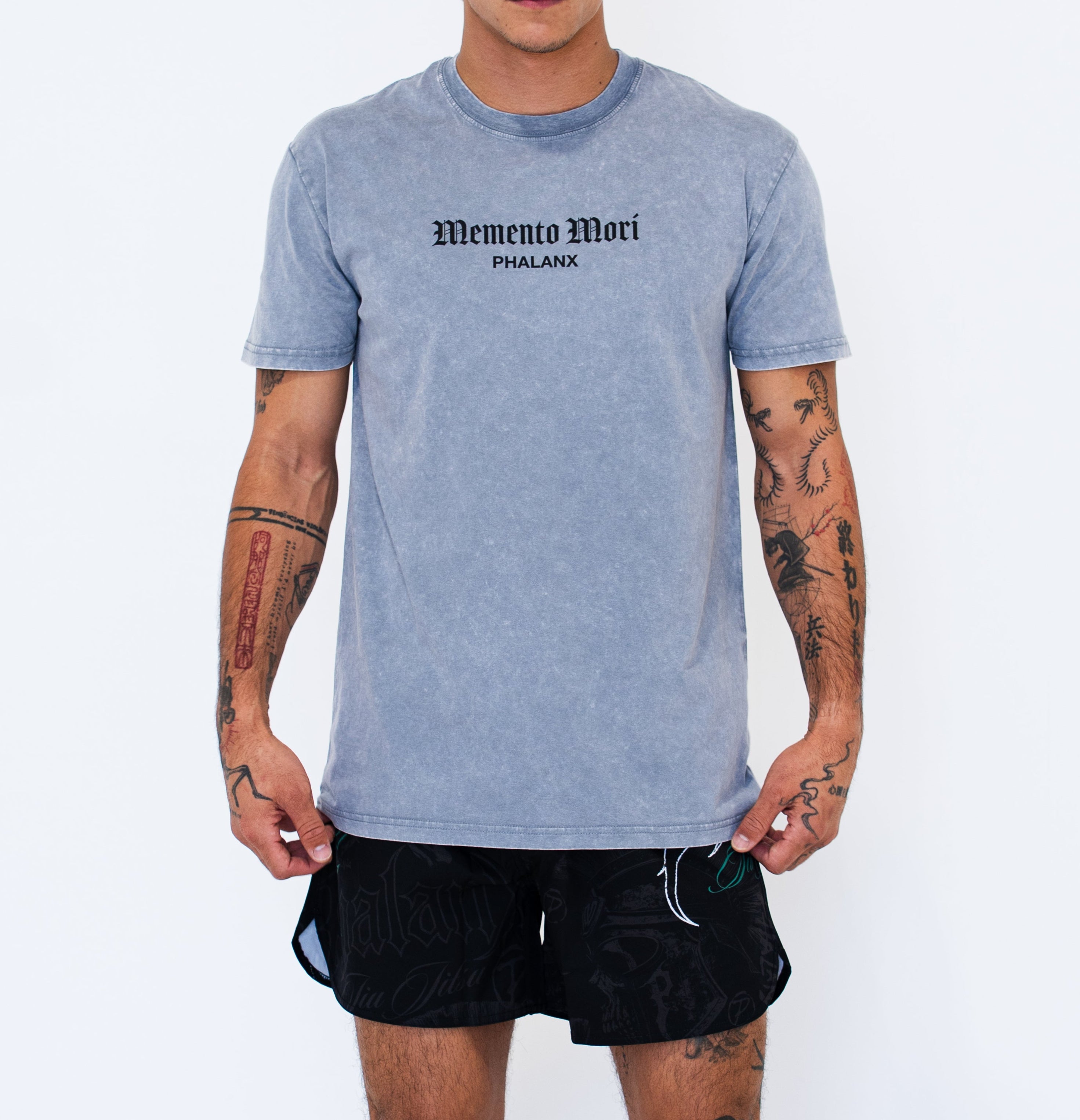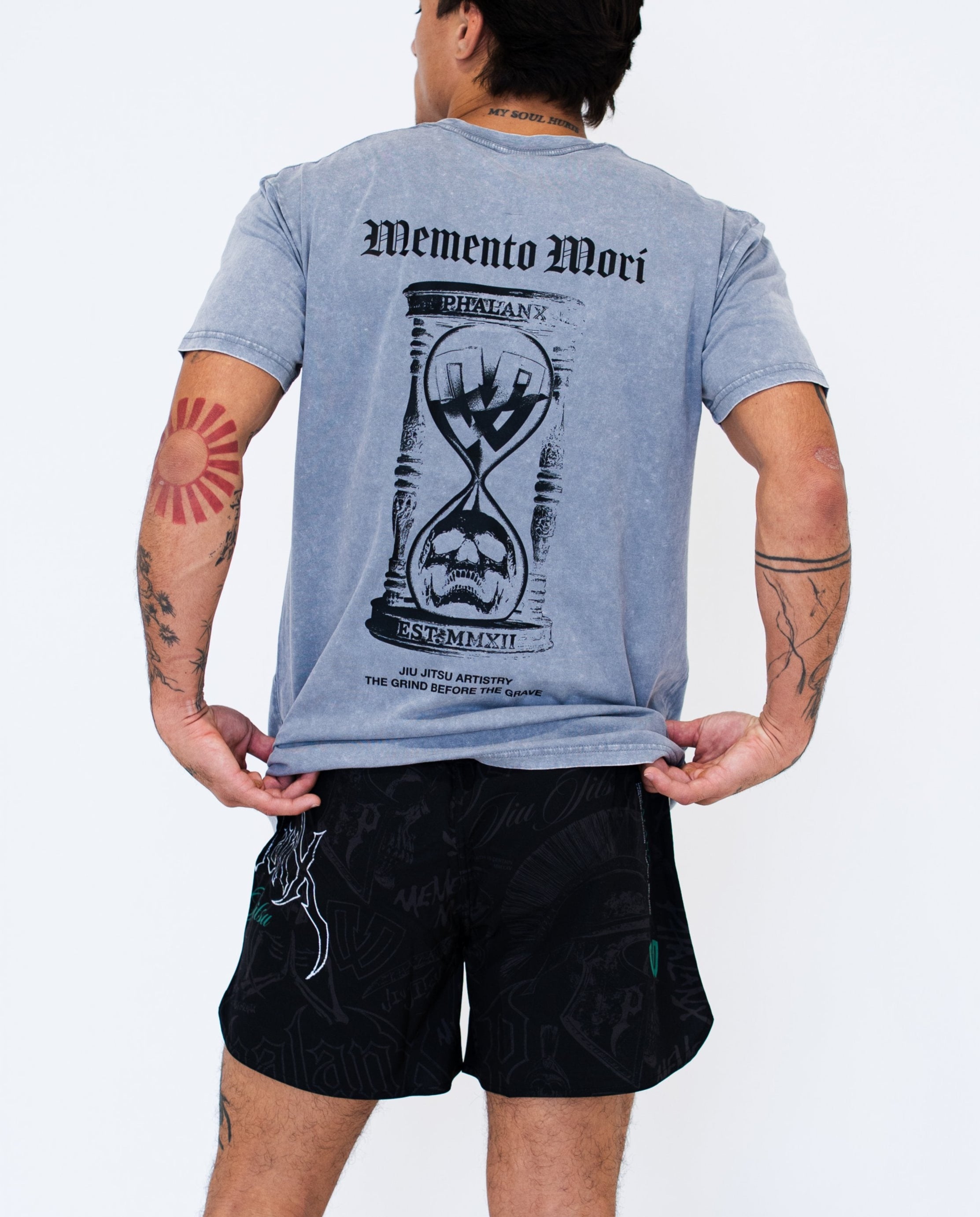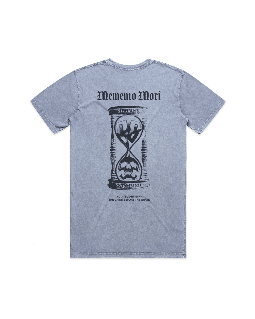 The Memento Mori Tee carries a stone wash finish with bold front and back graphics, reminding athletes of discipline and presence. Built from durable cotton for lasting comfort, it is everyday armor for those who train, compete, and live jiu jitsu culture.