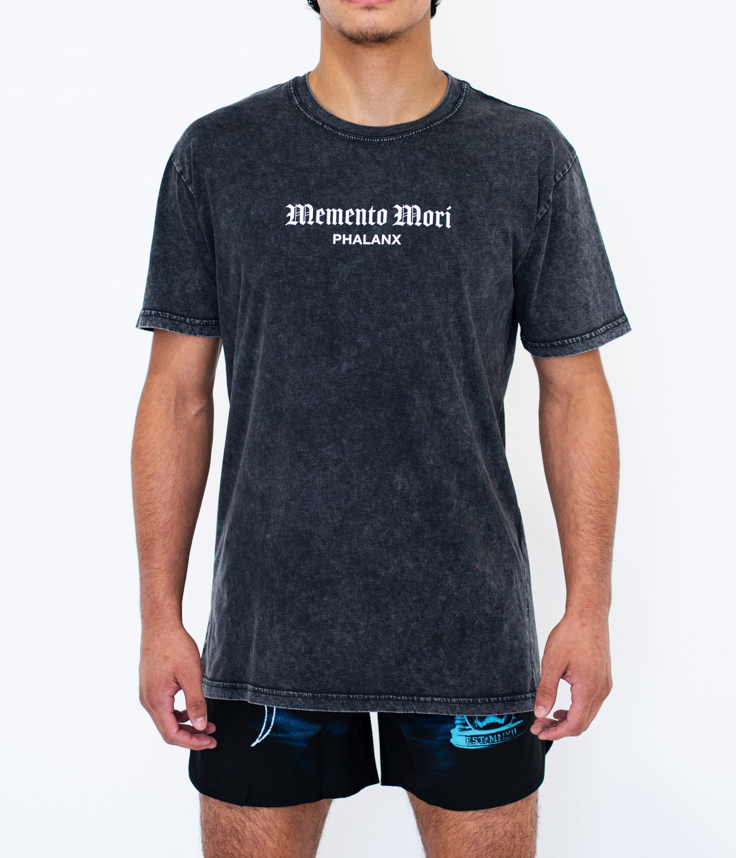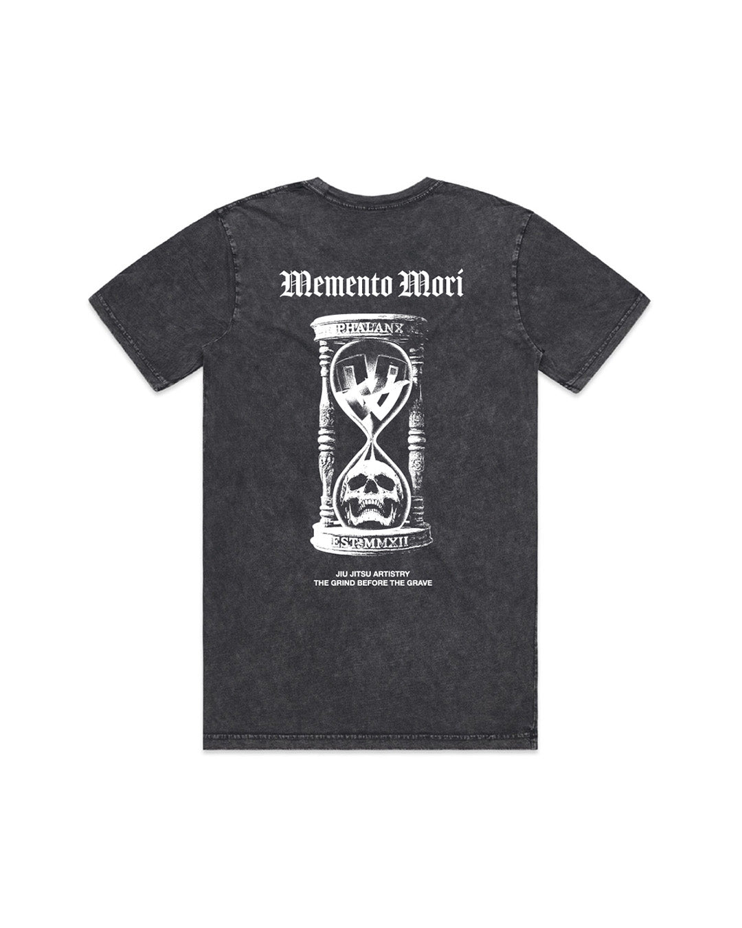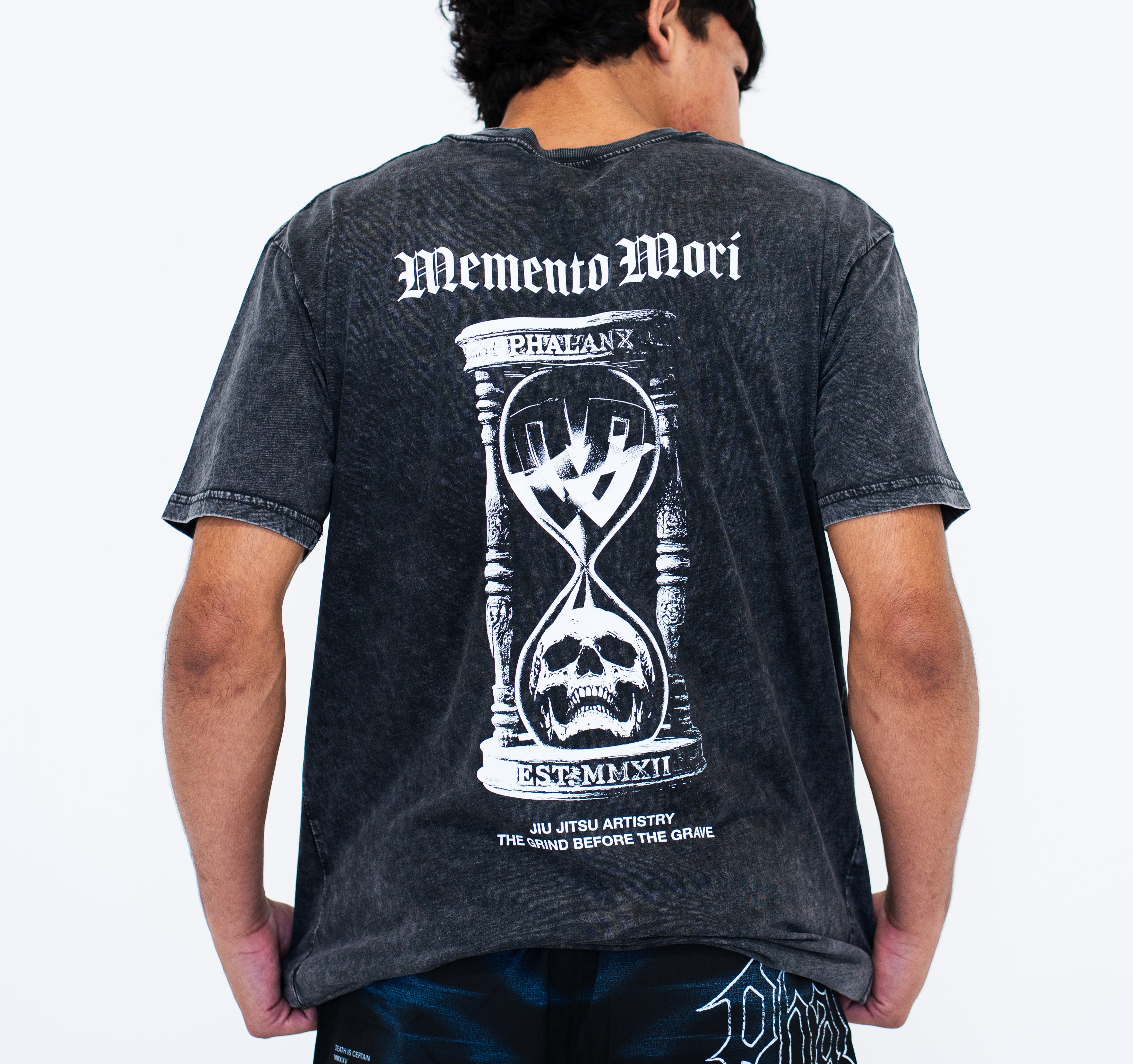 The Memento Mori Tee in acid-washed black delivers the same powerful message with a darker edge. Featuring front and back graphics that embody discipline and impermanence, this premium cotton piece is built for comfort and presence on the mats or in the streets.