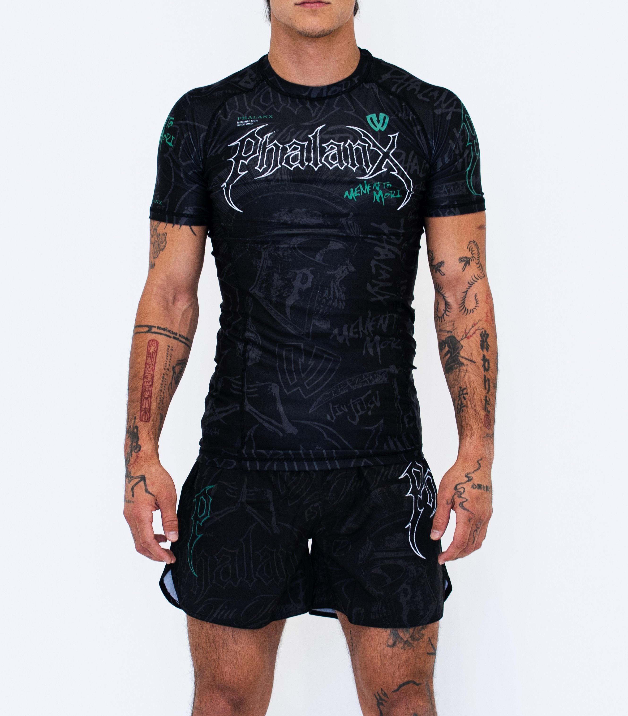 The Memento Mori Requiem fight shorts feature dark, intricate artwork that honors discipline and presence, built for those who train and compete. Lightweight and fast drying with 4 way stretch and a secure waistband, they deliver resilient armor for every roll.