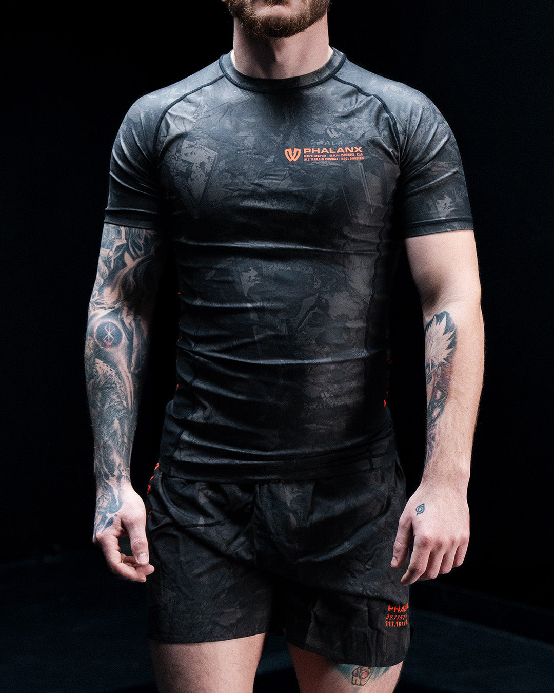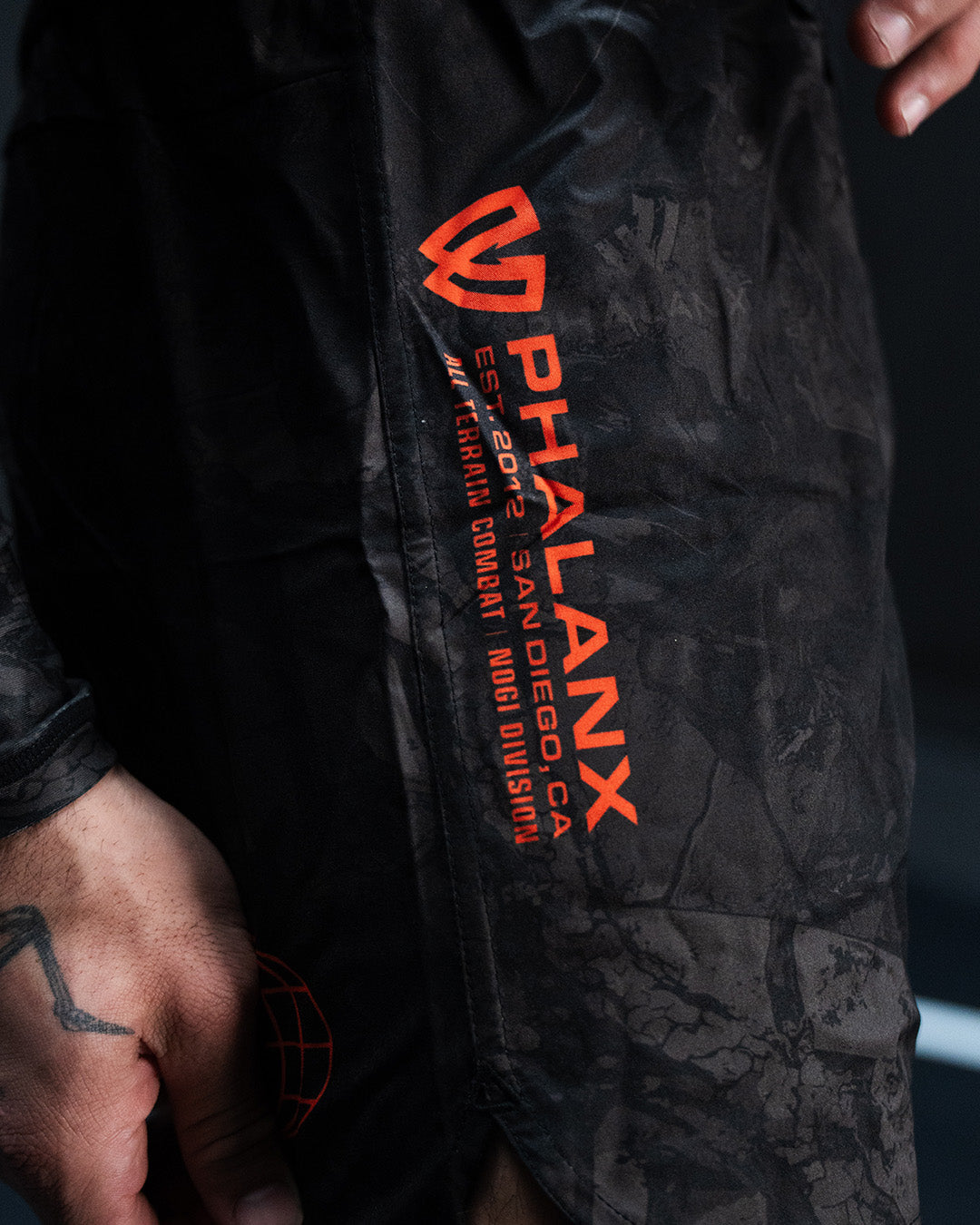 The Shadowcore fight shorts feature a dark camo design with sharp orange detail, built for those who train and compete. Lightweight and fast drying with 4 way stretch and a secure waistband, they deliver durable armor that stays strong through every roll.