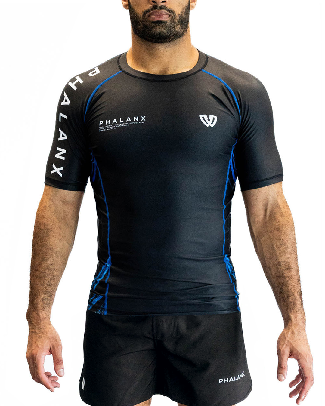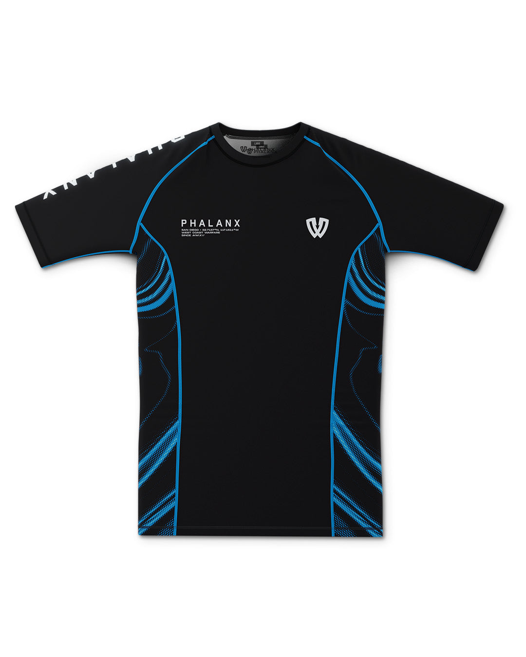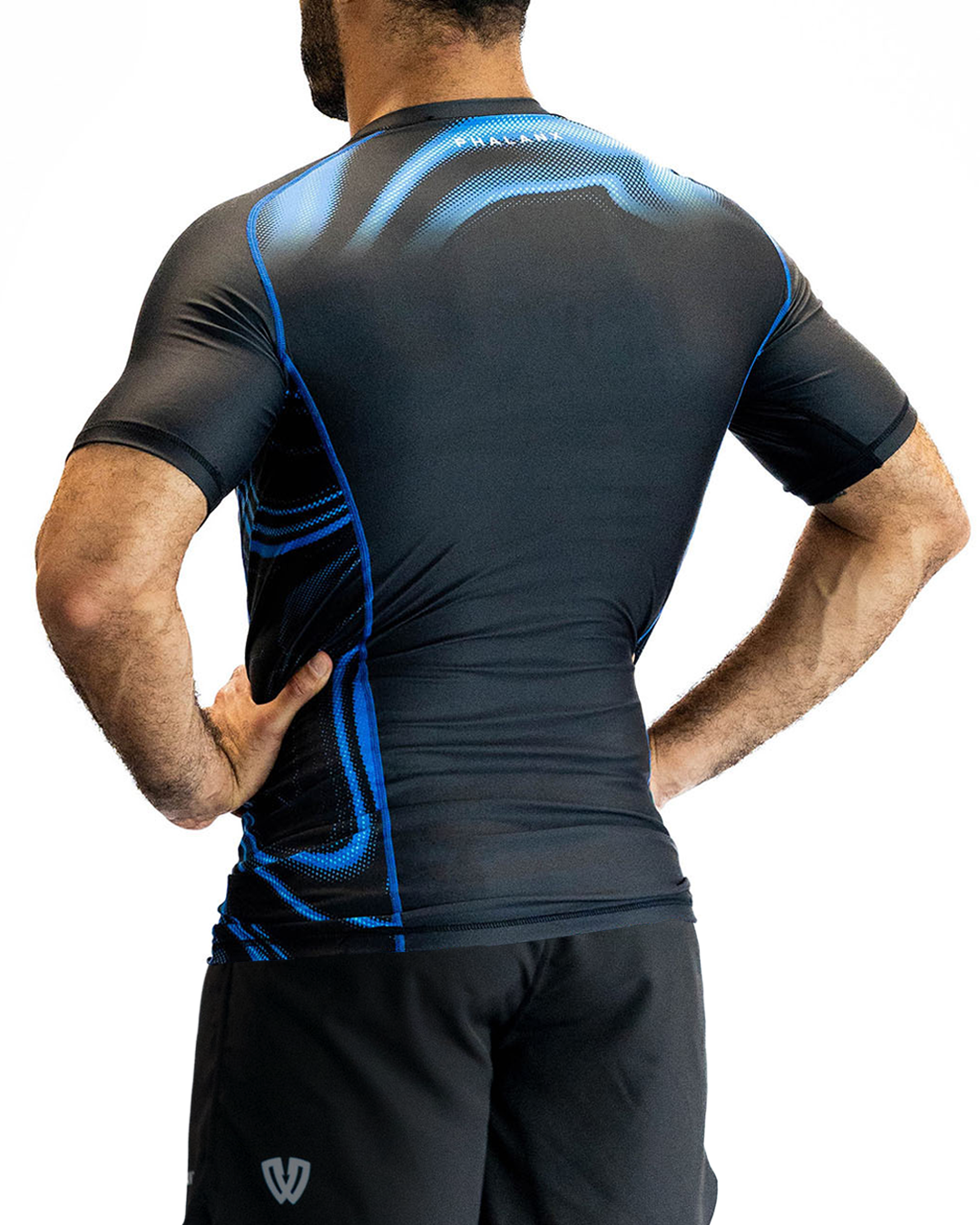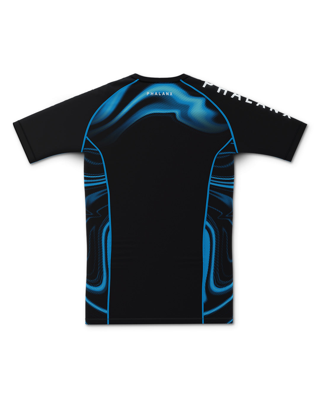 The Blue Team Rash Guard delivers precision, power, and a streamlined aesthetic built for athletes who train with intention. Deep black panels are cut with electric blue contour graphics that mirror movement and intensity, giving the piece a fast, technical edge.