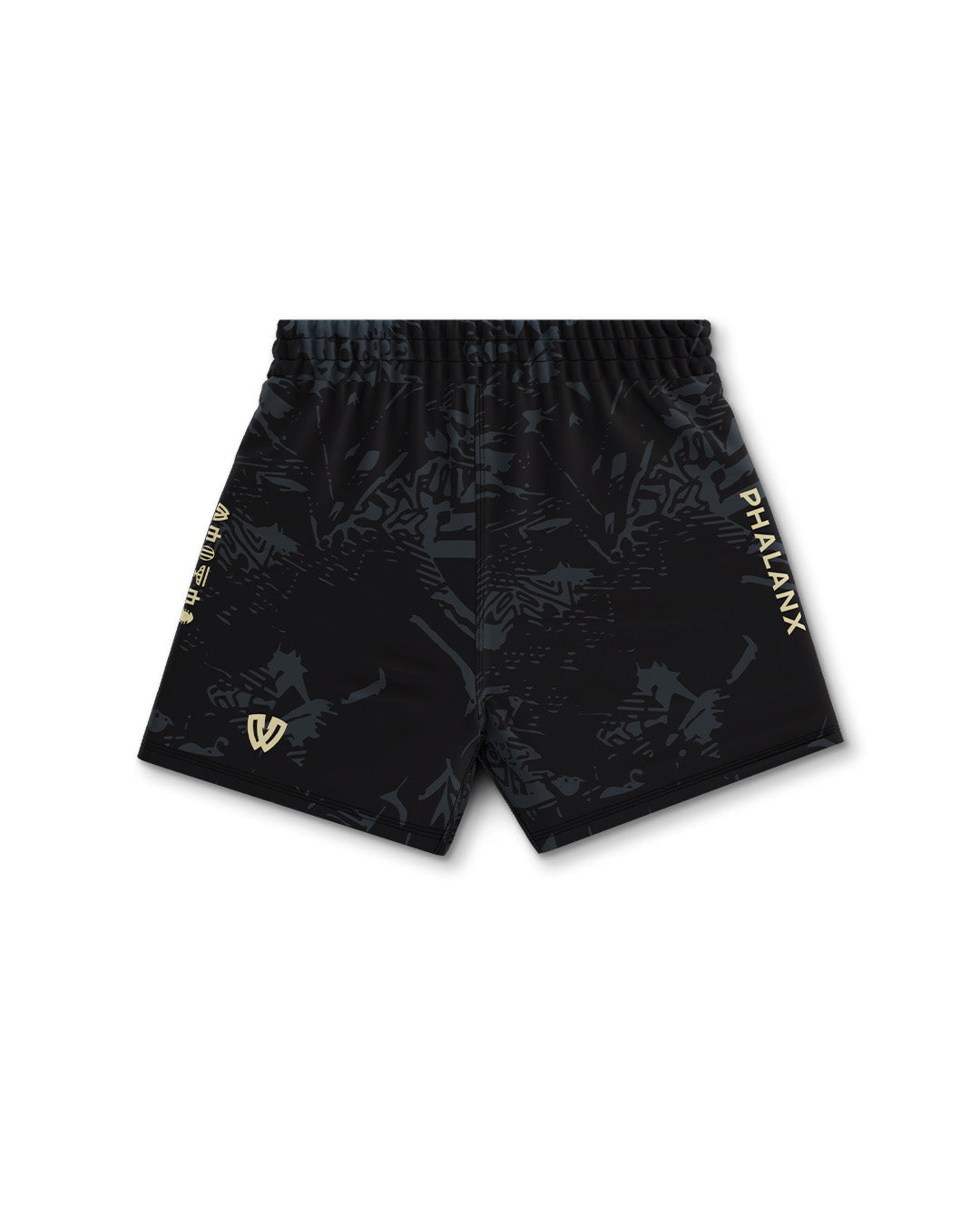 The Vanta fight shorts carry a dark, intricate pattern with clean detailing, built for those who train and compete. Lightweight and fast drying with 4 way stretch and a secure waistband, they deliver durable armor that moves with you through every roll.